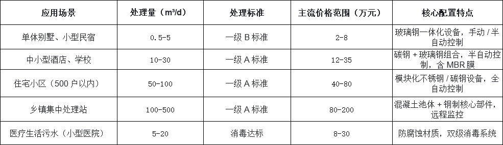 結(jié)合上述因素,我們整理了不同場景下設(shè)備的主流價格范圍(含設(shè)備本體、安裝調(diào)試,不含土建及管網(wǎng)),供采購方初步預(yù)算參考: