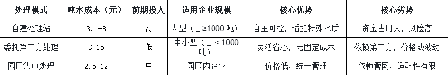 污水處理模式主要分為自建處理站、委托第三方處理、園區(qū)集中處理三類,不同模式的成本結(jié)構(gòu)、適用場景差異顯著,選擇時(shí)需結(jié)合自身需求綜合評(píng)估。